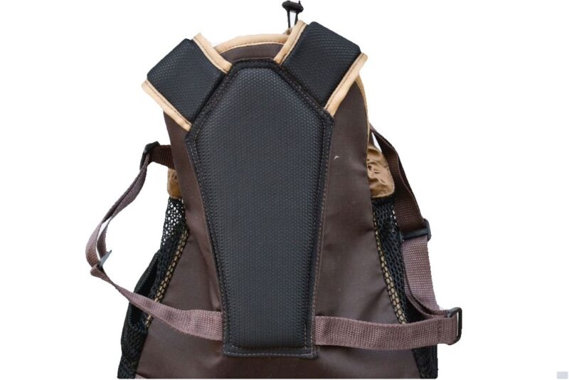 Backpack style carrier for your furry friend. Easy on your back and shoulders, this bag can be worn back or front – freeing your arms to hold other parcels. A great idea to transport pets who have trouble with joints or long distances. Extra padding in the middle for comfort. Drawstring provided to help contain your pet and adjustable straps allow for an easy fit. Collar clip inside for safety. Outer closed pocket in the front and small net pocket on each side. Sides lined with netting for ventilation.