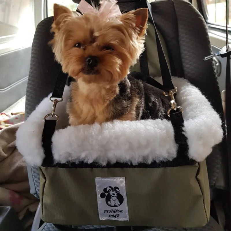 This Dog Car Seat with Fleece padding is our brand new product and it’s already famous!  Strap your little one in while keeping the car clean and your mutt comfortable in just one product. Extra padding at the bottom for extra comfort.  All metal fittings and adjustable straps to fit the car seat in any car.  Safety leash inside.  The fleece is removable and fully machine washable on cold wash.