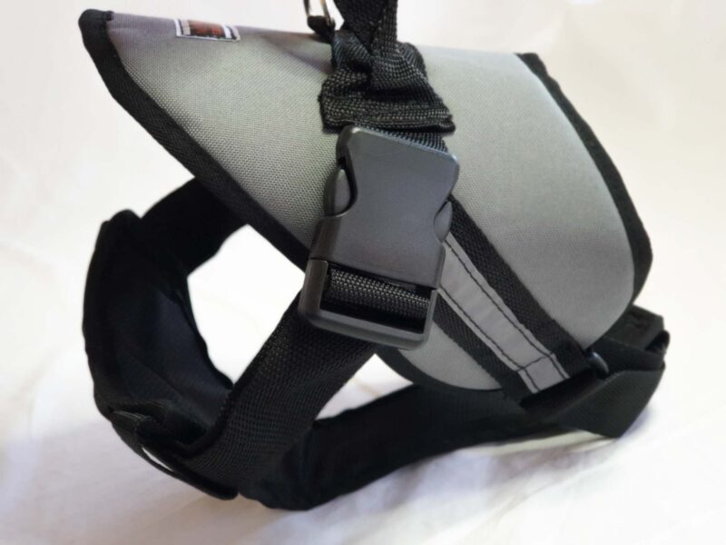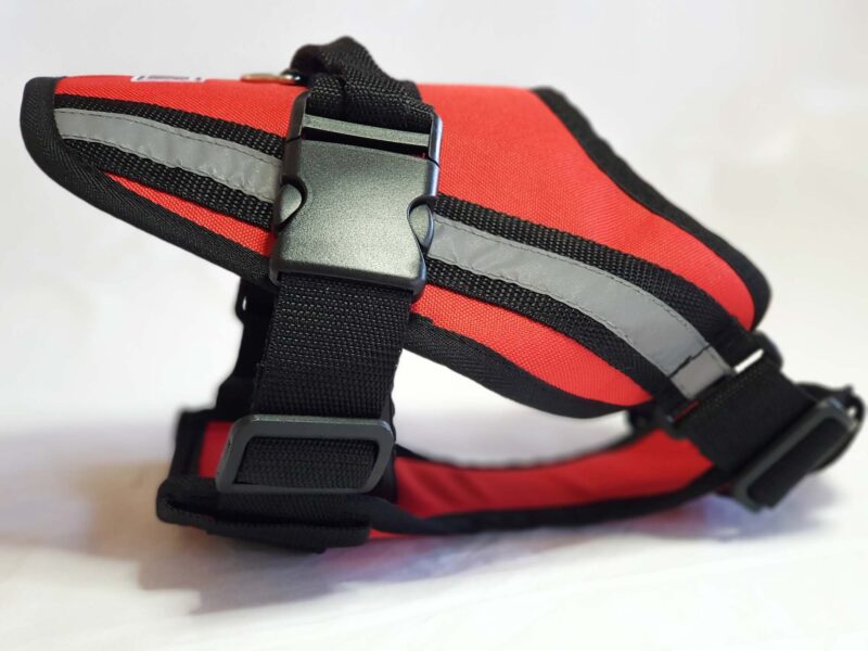 The spinal pad, is anatomically shaped to wrap around the dog’s back, cupping over the dog’s body, with no pressure points. It also incorporates a strip of reflective tape down each side of the panel, aiding visibility.